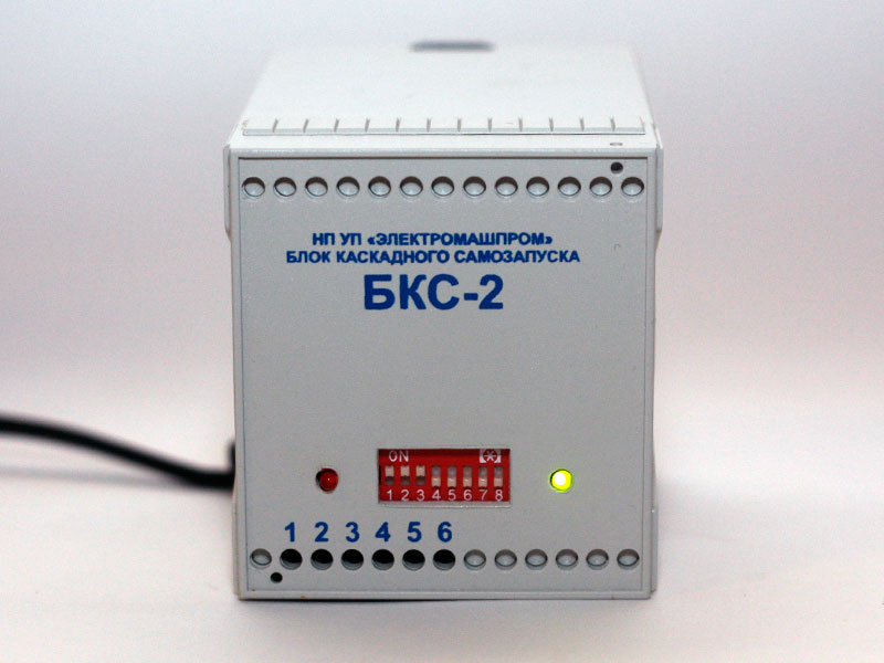 Блок каскадного самозапуска БКС-2 предназначен для автоматического повторного включения в работу пускателей и контакторов при отключении из работы после кратковременного (на время работы АВР или АПВ) исчезновения или просадки напряжения питания 0,4 кВ. Блок БКС-2 разработан в качестве замены ранее выпускаемых устройств АПВ-ПК и БКС-1М.