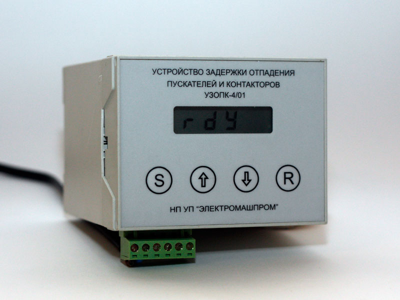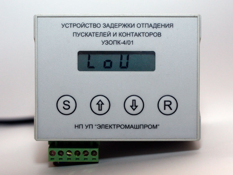 Устройство задержки отпадения пускателей и контакторов УЗОПК-4/01 предназначено для удержания в притянутом (сработанном) состоянии якоря пускателя или контактора во время кратковременного исчезновения (на время работы АВР или АПВ) или просадки напряжения питания 0,4 кВ. Это позволяет сохранить технологические схемы и параметры работы основного оборудования во время перерывов в электроснабжении, облегчает самозапуск электродвигателей на выбеге, снижает затраты на возобновление режимов работы.